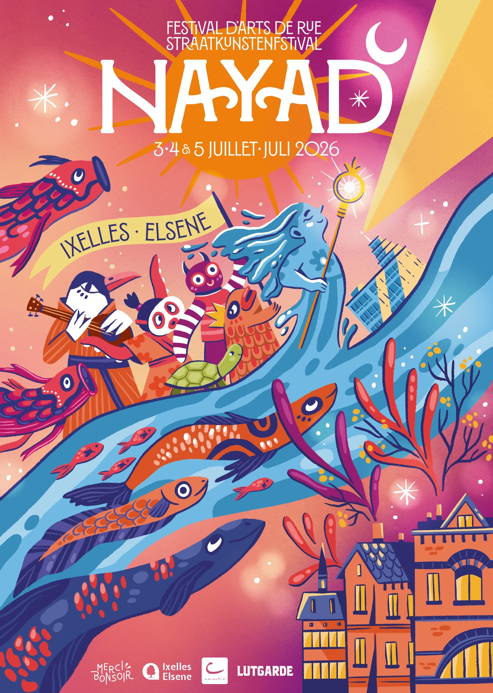 Nayad est le festival d’arts de rue d’Ixelles. Pendant trois jours, les spectacles surgissent dans la ville : une fanfare traverse une place, un acrobate apparaît au coin d’une rue, un spectacle commence là où on ne l’attendait pas.